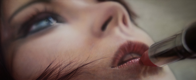 For At This Moment with You, Simon has photographed for his source material a model applying lipstick, the pose taken from a film sequence. In the language of film, putting makeup on signifies something; in his paintings, Simon stresses the telling detail of the kind of objects that are referenced in film to enhance and coax meaning from a scene. But again, as with We Were in This Together and then You Were Gone, the meaning is unclear; the viewer is left with a series of compelling but mysterious elements of a fragmentary narrative. |
