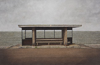 When visiting Llandudno a number of years ago I took a few photos of these mid century style seaside shelters. I thought the simplicity of them against the vast sea was a stunning juxtaposition.